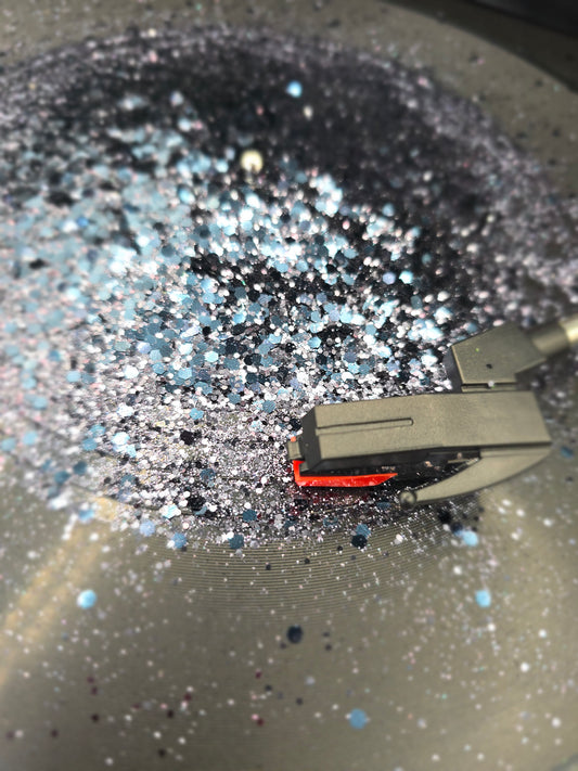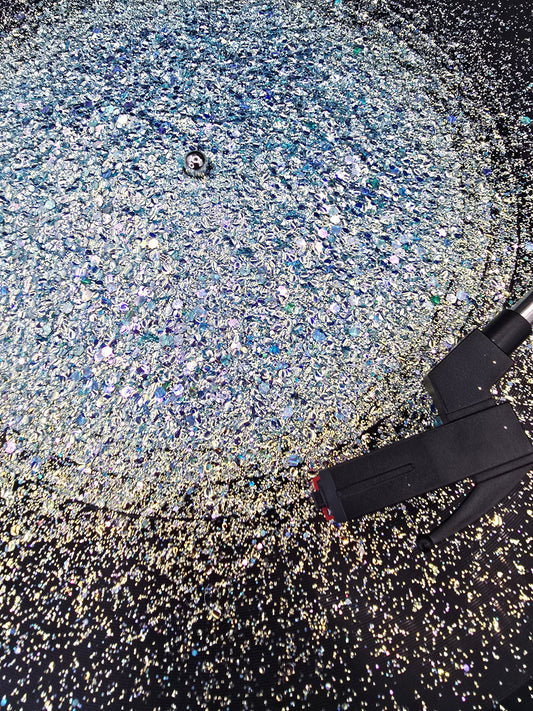 A collection of various shapes and types of glitter. Large, Medium and fine cuts mixed to make a blend of cuts that will dazzle your next project.