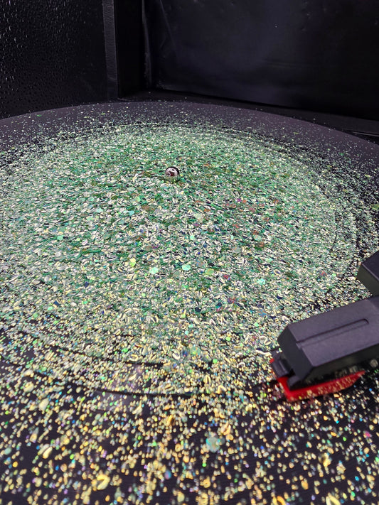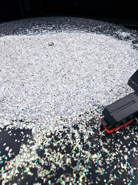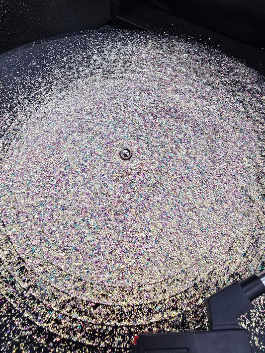A collection of various shapes and types of glitter. Large, Medium and fine cuts mixed to make a blend of cuts that will dazzle your next project.