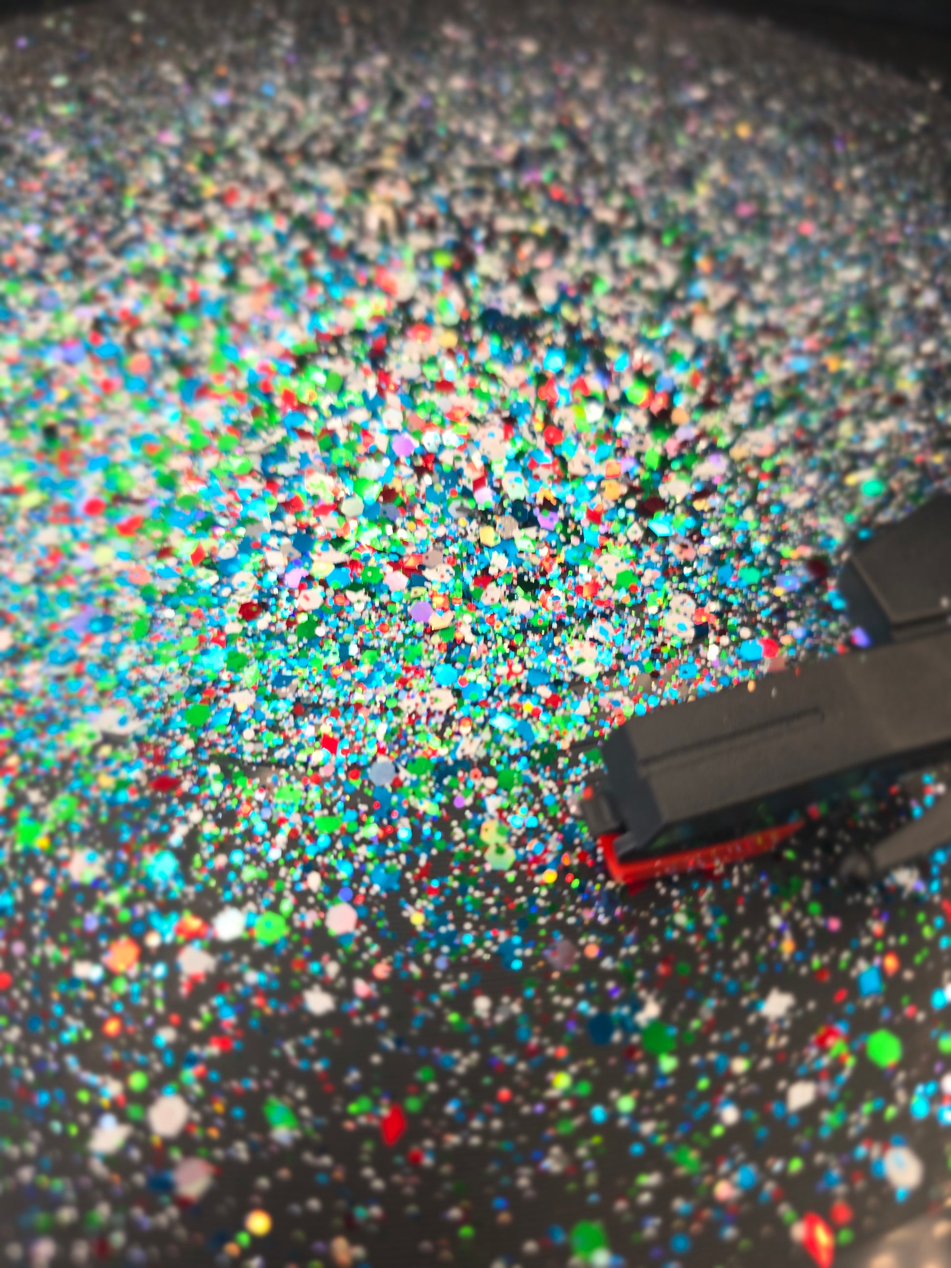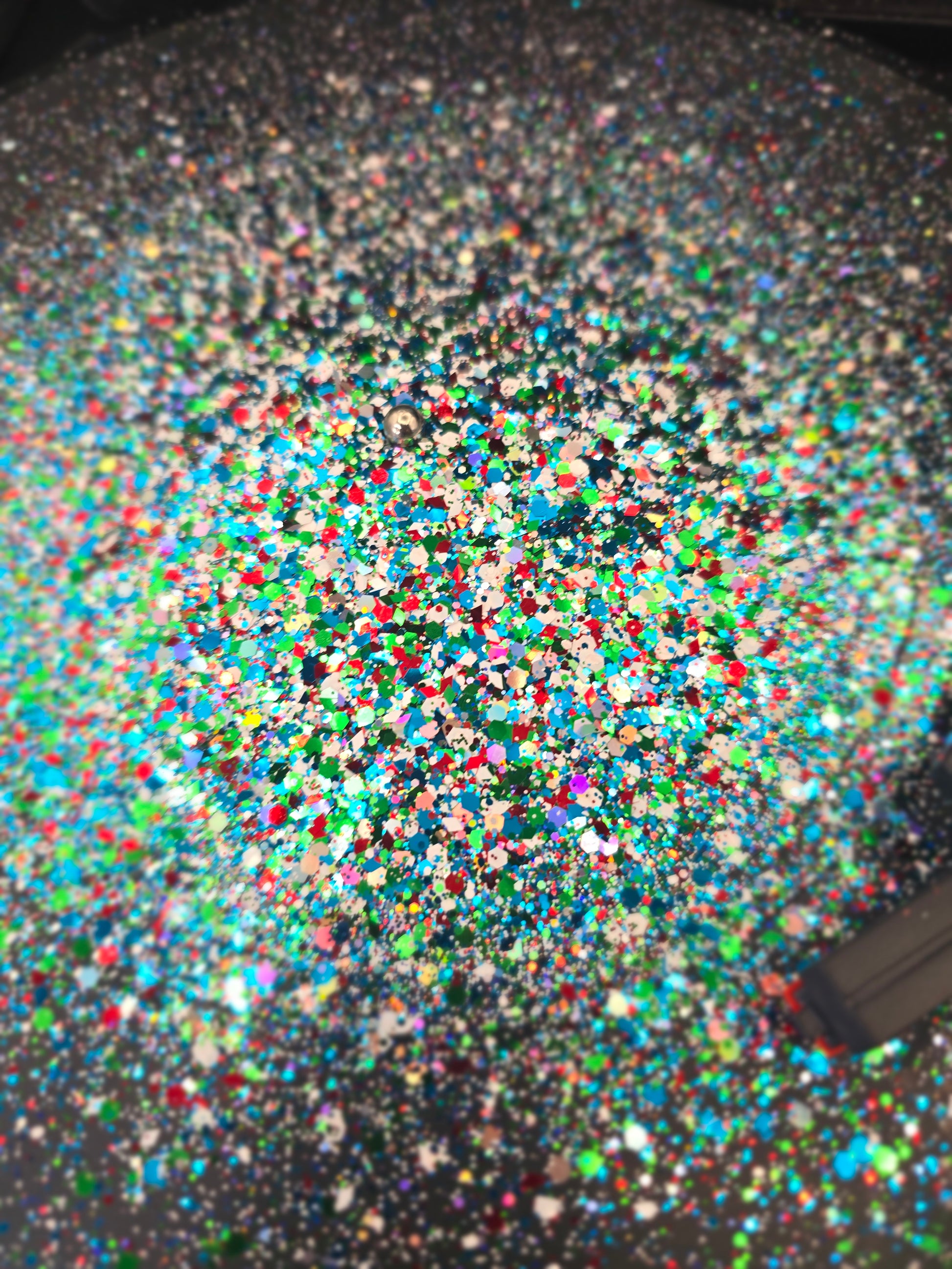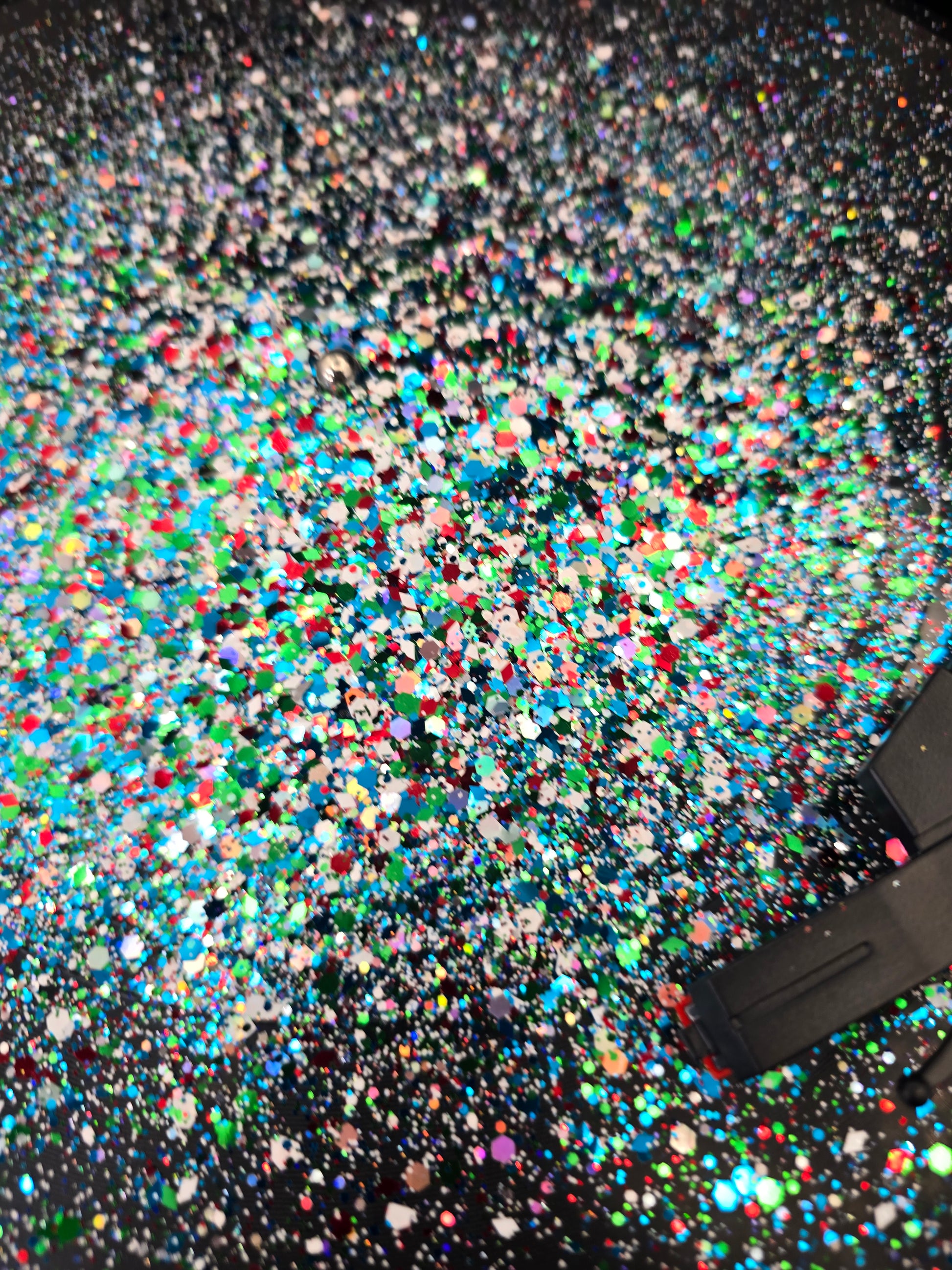 Solvent resistant glitter.