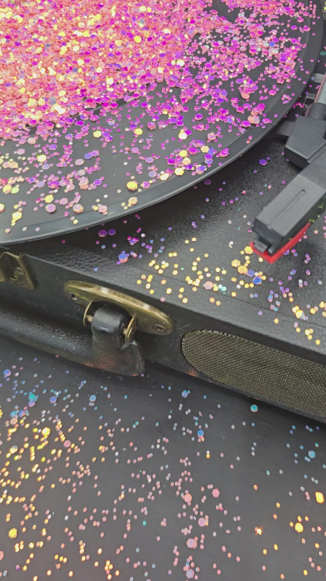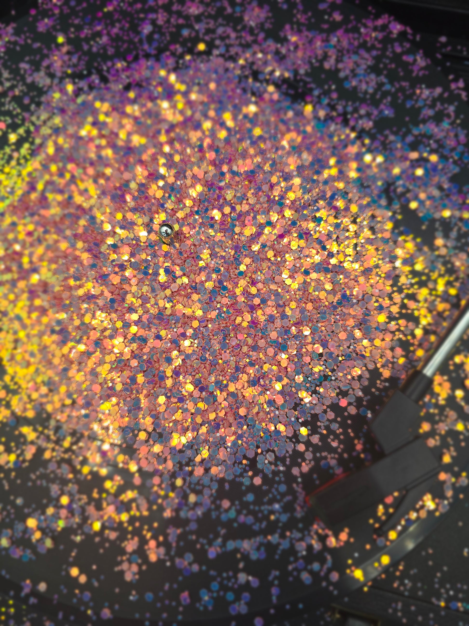 High flash metallic, red, pink Coral toned chunky mix with a flash of blue & gold.