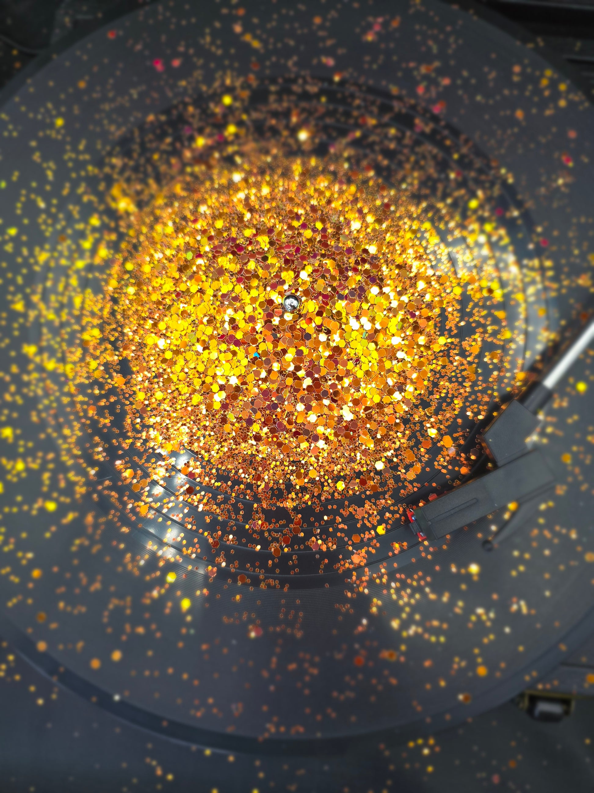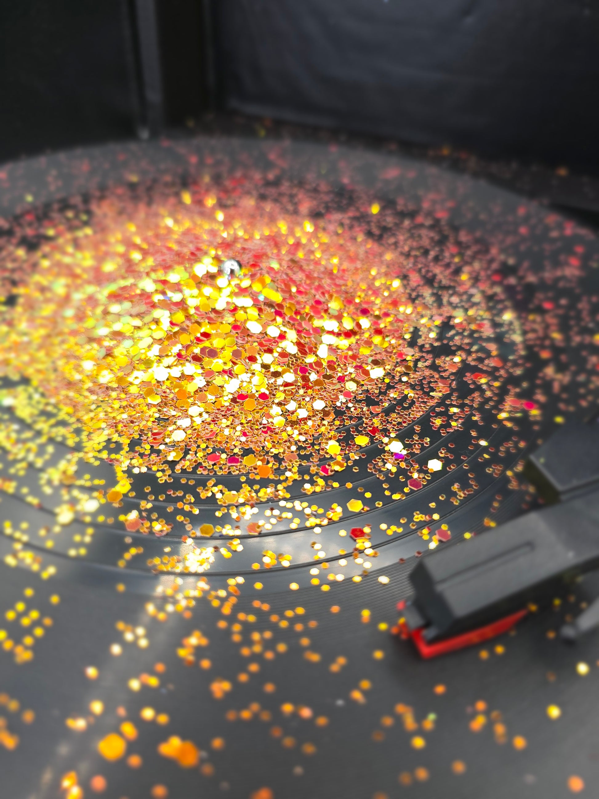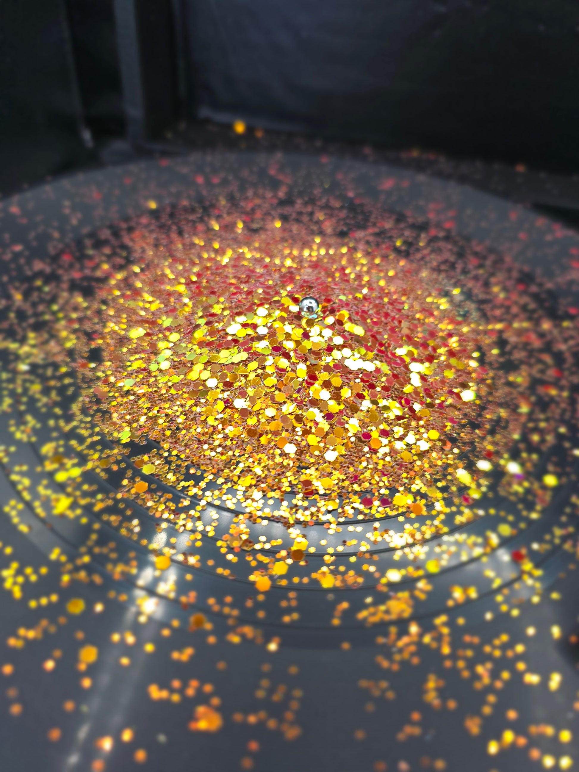 Gold orange yellow shift THICK CUT chunky. For tumbler makers please ensure you apply over a base paint or add similar fine as filler.