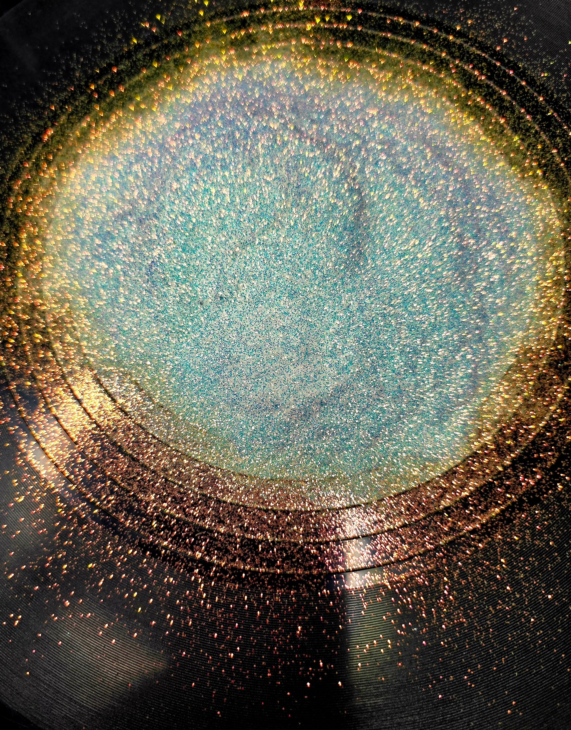 Ultra Fine 1/128 Opalescent shift glitter. Glitter best recommended for burnishing using tacky adhesive creating a blue opal rainbow shift.