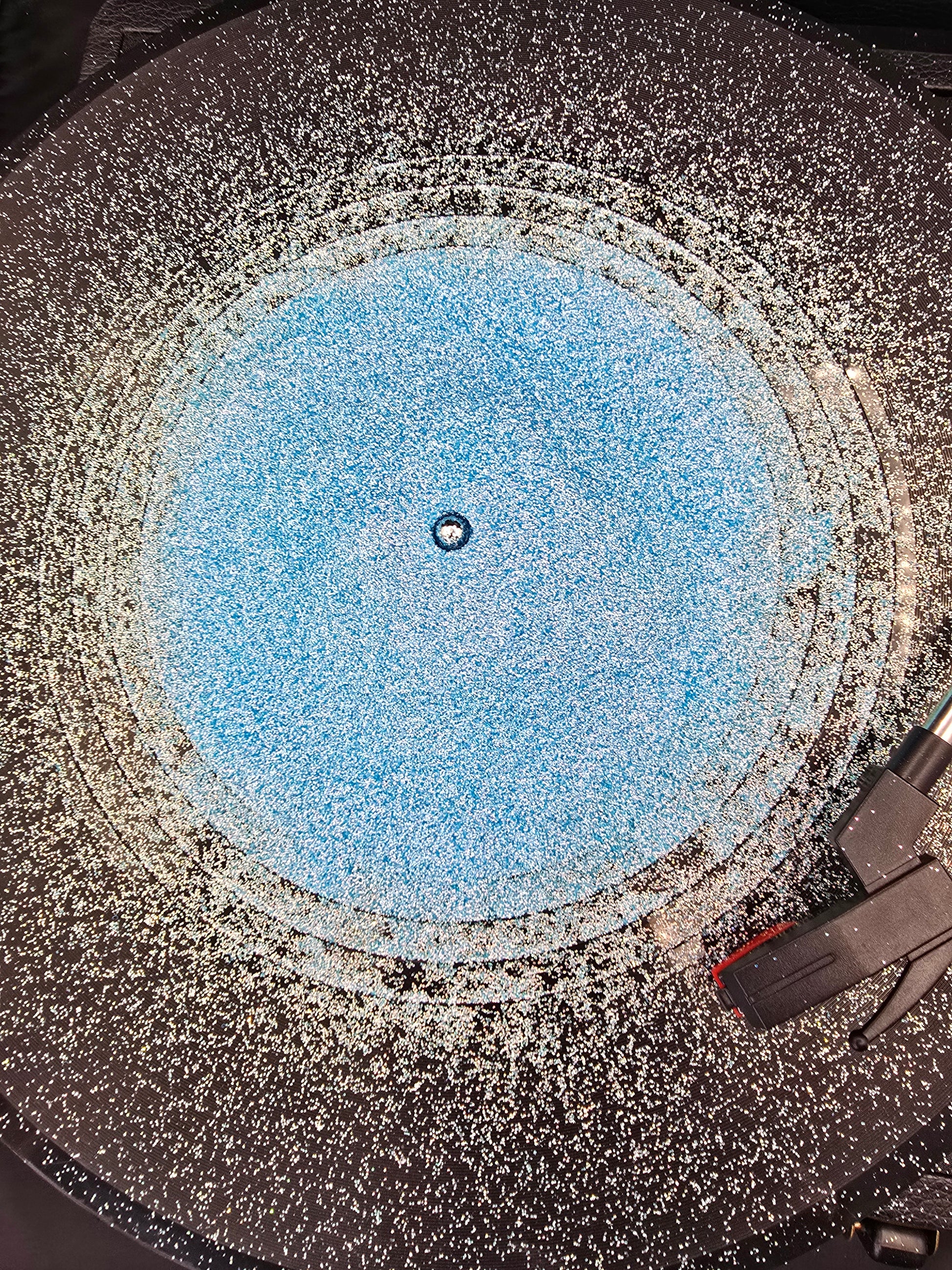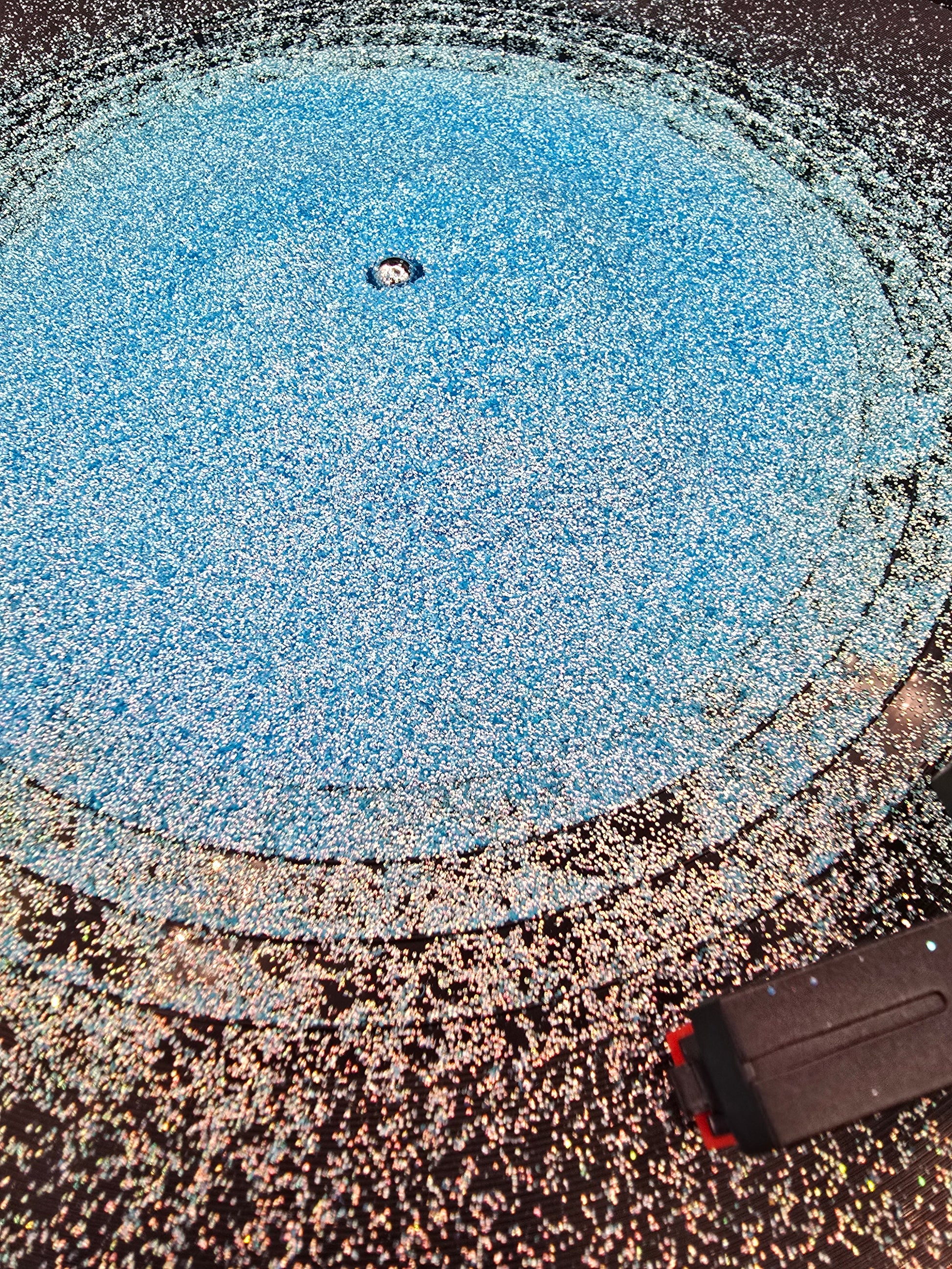 Ultra fine High beat drops of light pink beads that have a blue shift