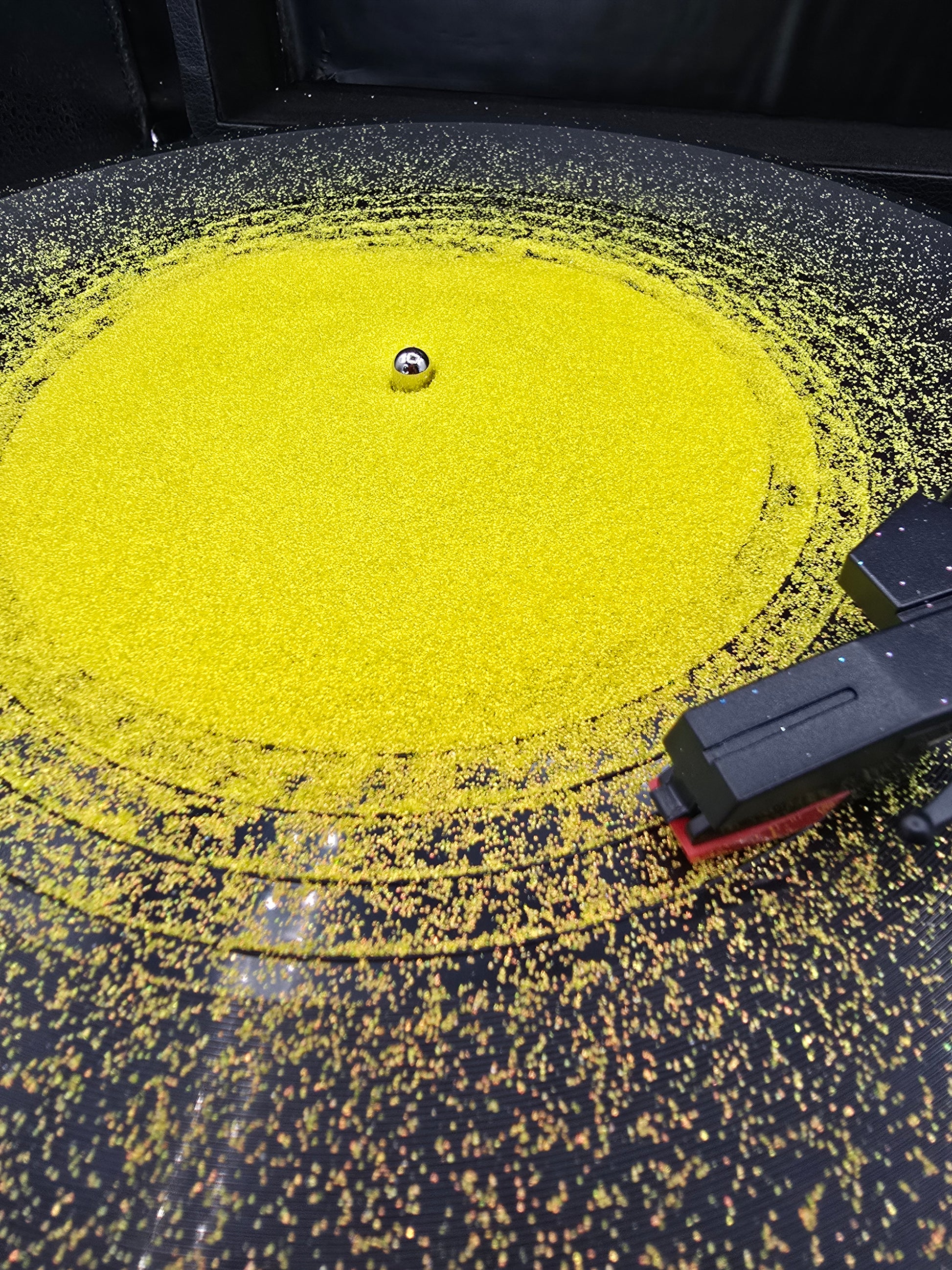 Ultra fine High beat drops of light pink beads that have a blue shift