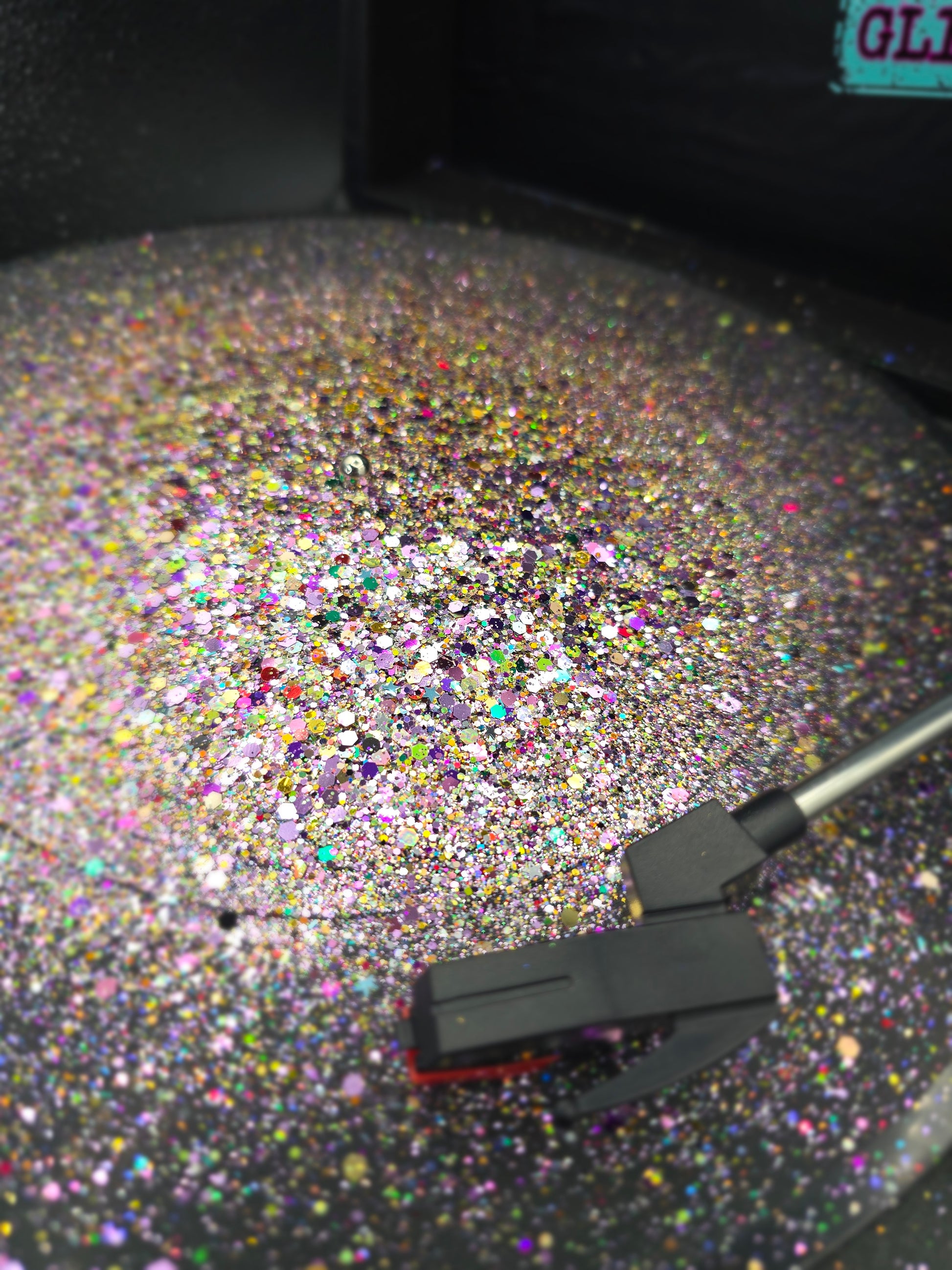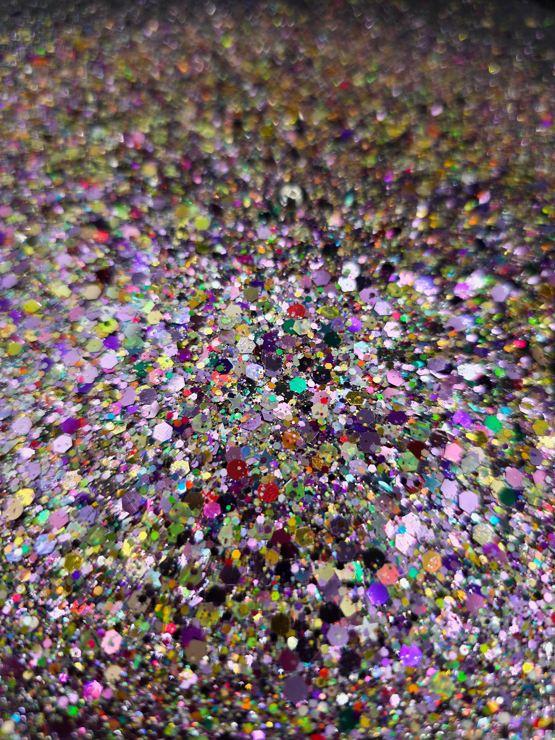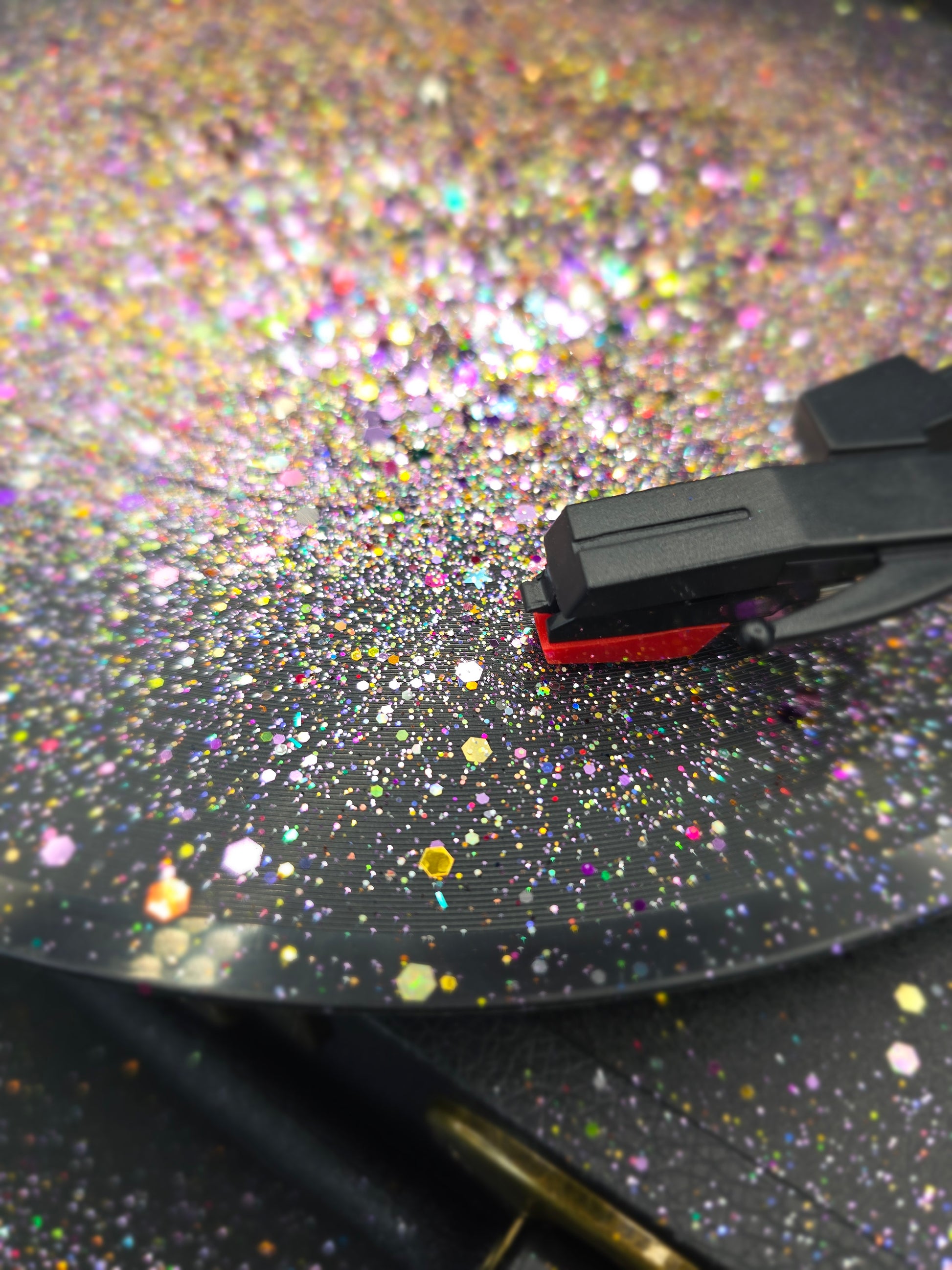 Exclusive Scissors Mix of Chunky and fine Red holographic mixed with glossy black chunky mix glitter.
