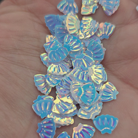 Thin metal like shiny blue opal shells. Perfect for a mermaid or beach style Ttumbler.