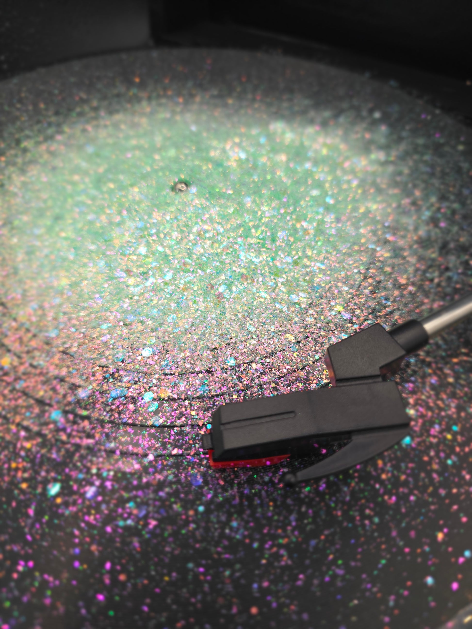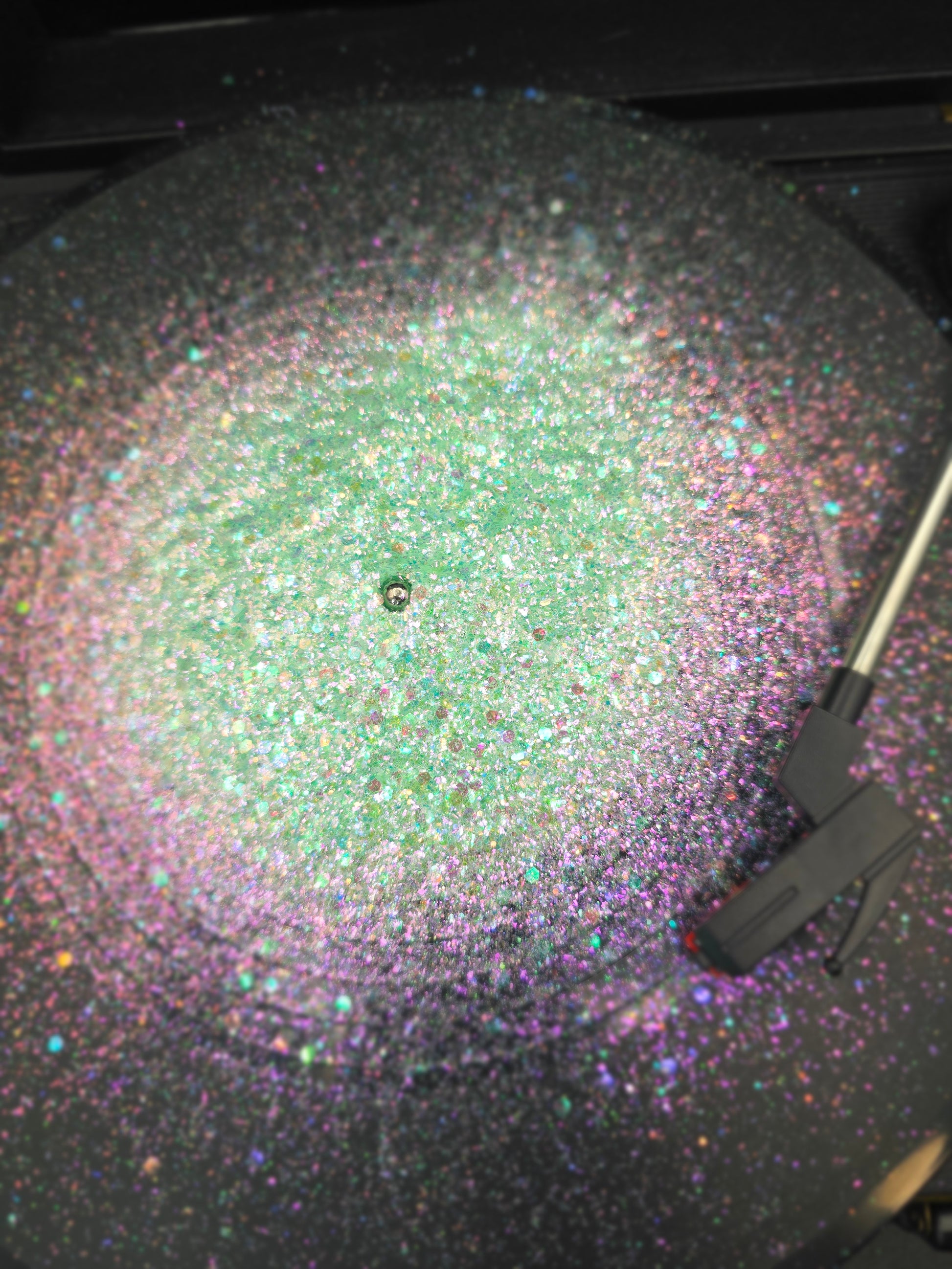Solvent resistant glitter.
