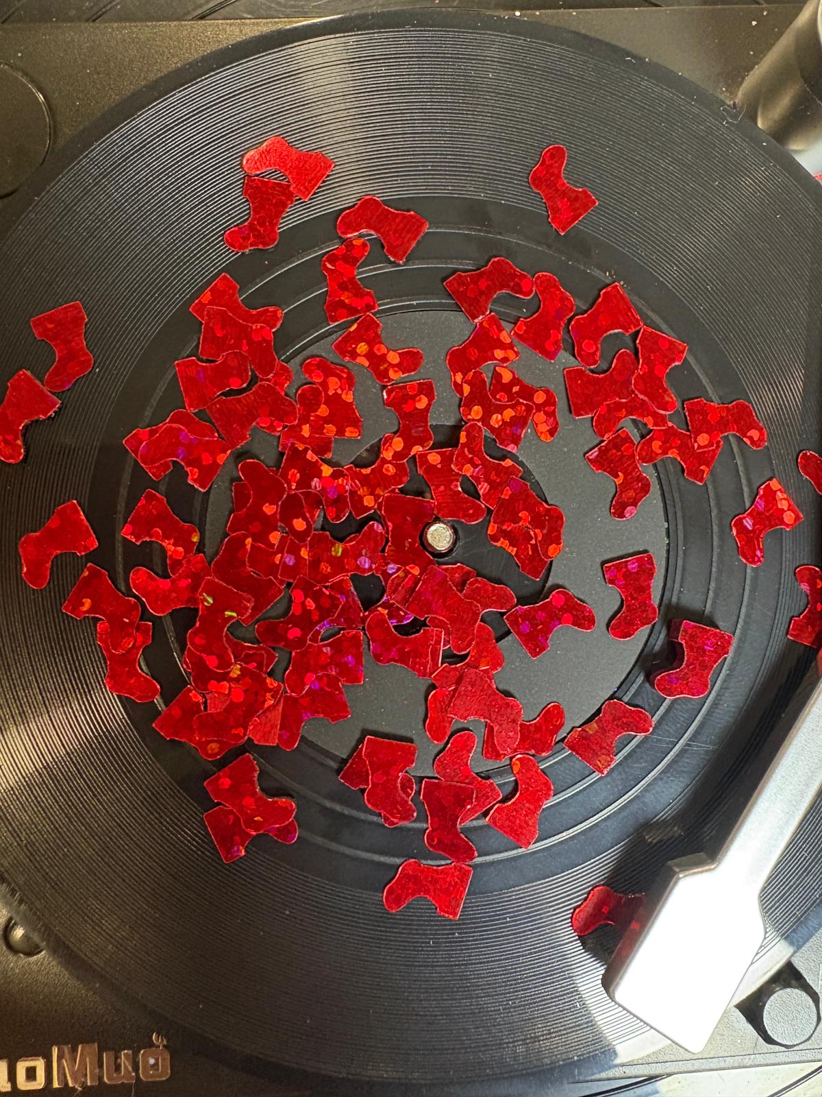 Small Red Holographic Christmas stocking shape glitter. Slightly thicker than regular shape glitter.